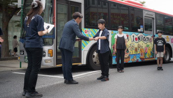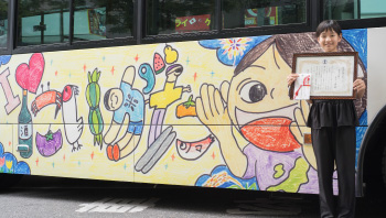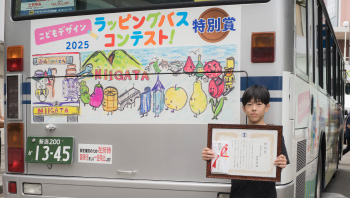 こどもデザインラッピングバスのお披露目と