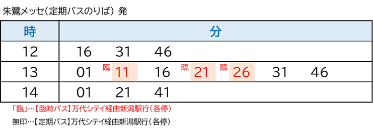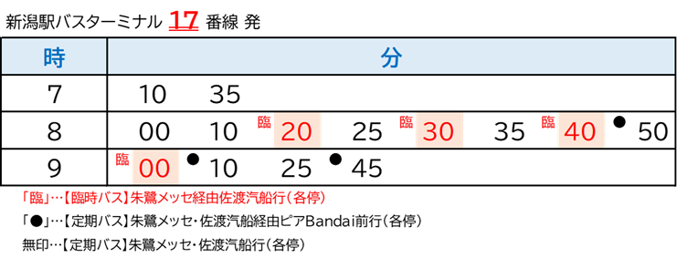 | 運行区間 | 新潟駅 ~ 万代シテイ ~ 朱鷺メッセ ~佐渡汽船 |