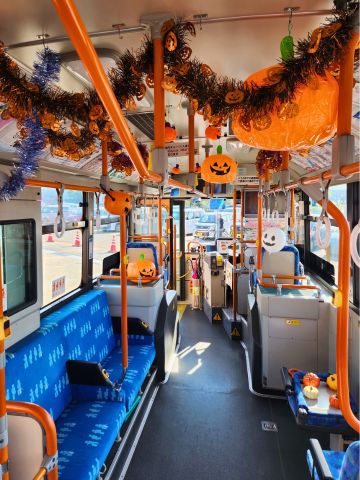 アピタ新潟亀田店で開催された「ワクドキハロウィン のりものフェスタ」で、かぼちゃ電車バスの展示やワークショップを実施しました。
